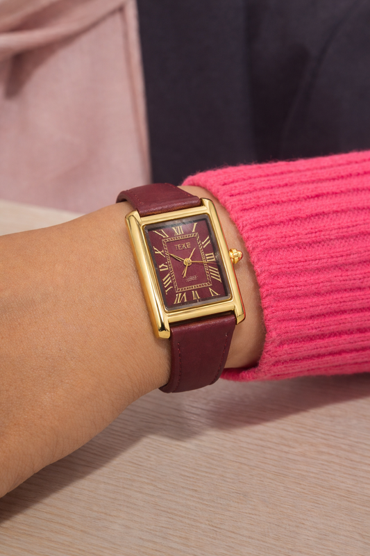 IEKE Gold Wine Rectangle Watch