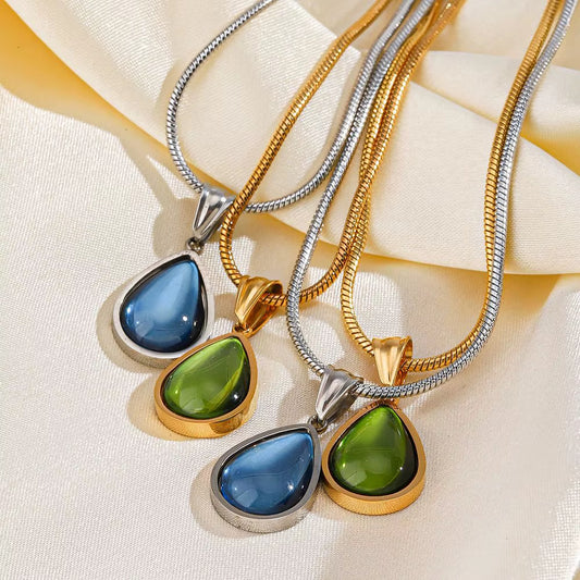 DARK-BLUE NATURAL STONE PENDANT NECKLACE
